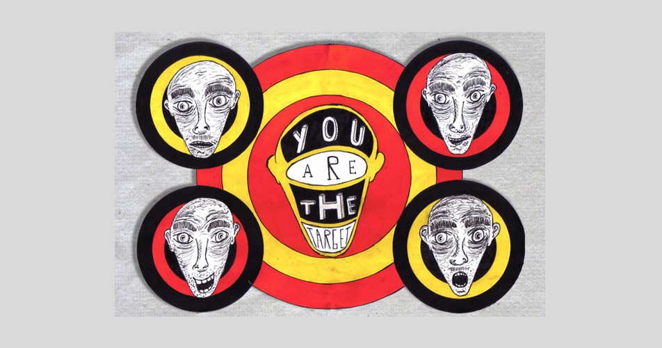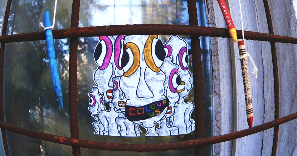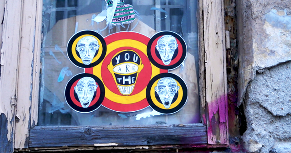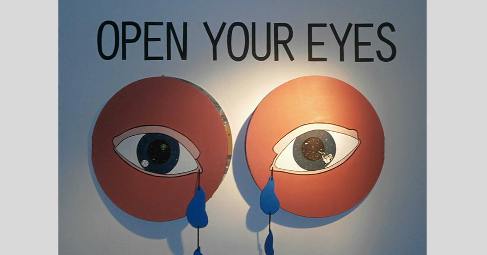 viewer to pay attention to society, with eyes wide open. The work is composed of two eyes in tears, as
